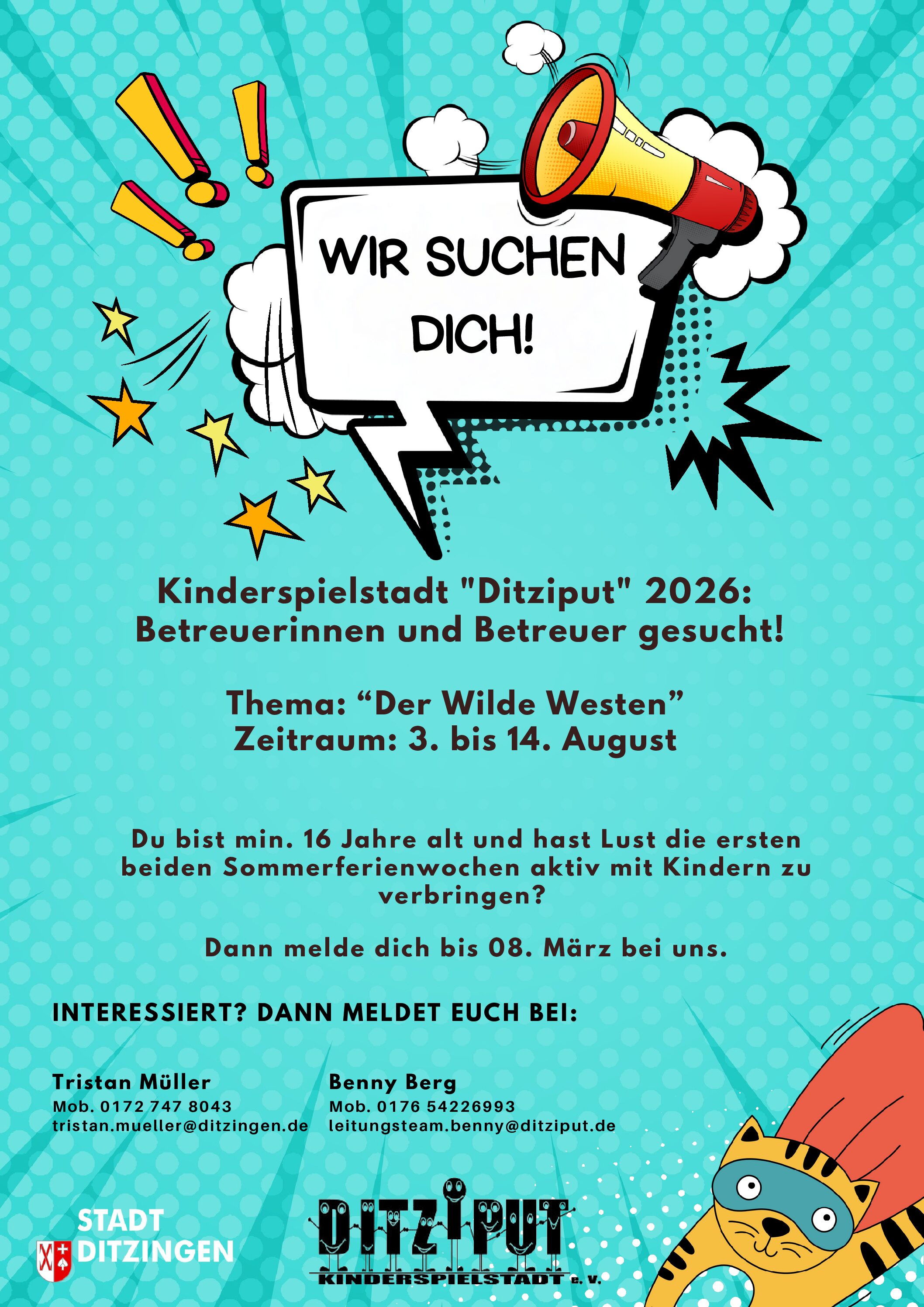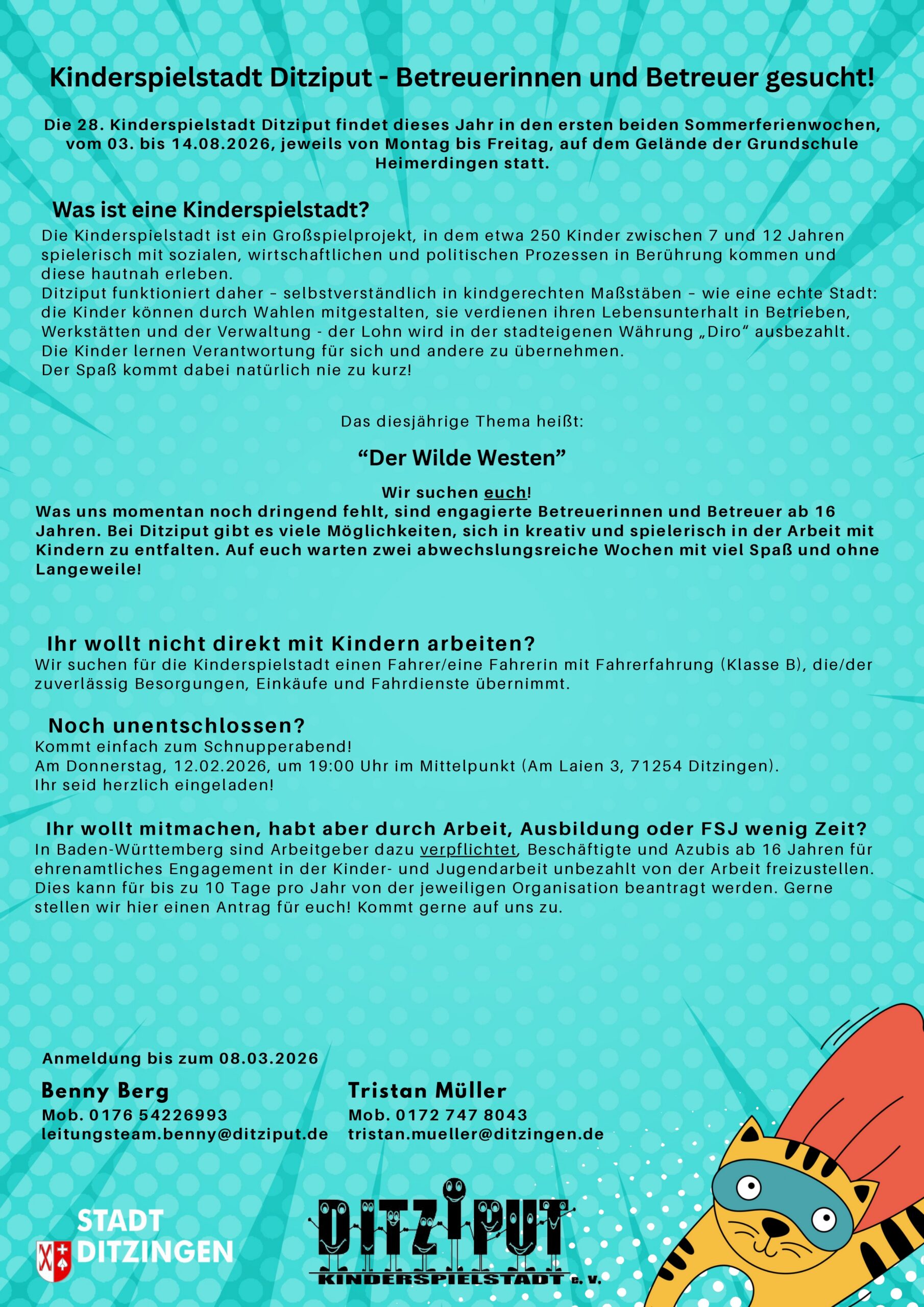 Kinderspielstadt Ditziput Dieses Jahr zum 28. mal! Kind zur Teilnahme anmelden (voraussichtlich ab April)Betreuer werden ?